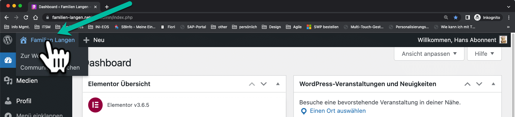 Beunruhige dich nicht, dass die Webseite, die sich nun öffnet, anders aussieht, als du es gewöhnt bist. Klicke oben links auf Familien Langen …